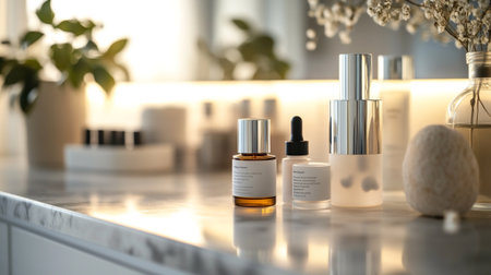 Elegant display of skin care and perfume items, emphasizing healthy skin practices and the beauty of self-care.