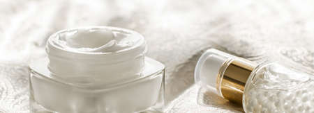 Face cream moisturizer in a jar and serum gel bottle, luxury skincare cosmetics and organic anti-aging product for health and beauty brand