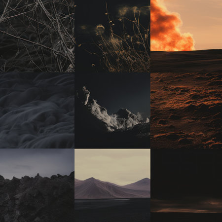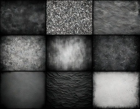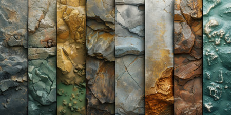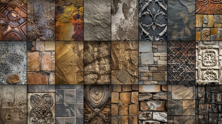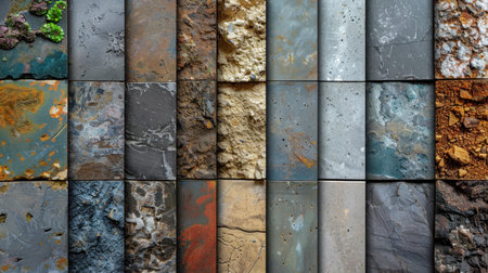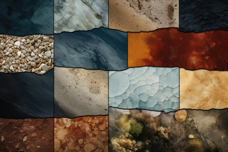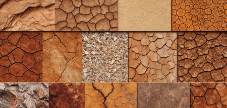 Diverse earthy textures displayed in a grid showcasing unique patterns and colors. Perfect for backgrounds, design projects, or artistic inspiration.