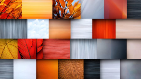 A vibrant collage featuring a variety of textures and patterns, showcasing a spectrum of colors and materials.