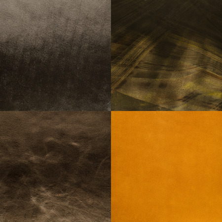 Set of brown leather samples, texture background.