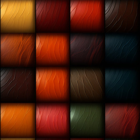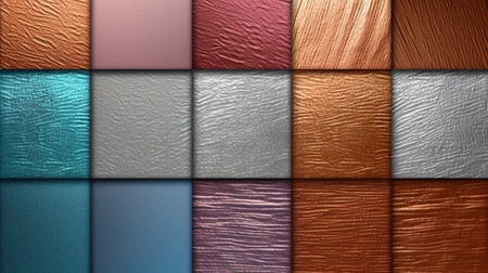 the photo showcases a collection of textured panels featuring various colors and patterns. the panels are designed with smooth and curved lines, creating a realistic and visually appealing effect. the dark palette chiaroscuro and warm color palette add depth and warmth to the industrial-inspired paintings. the sun-kissed palettes further enhance the textured expressions of the panels. ai generated