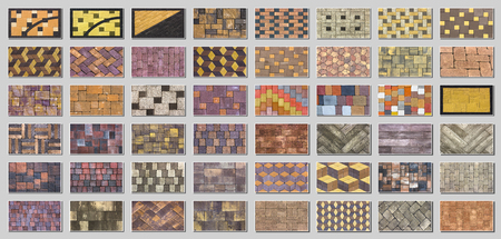 Collage sample of concrete paving slab for laying tracks.