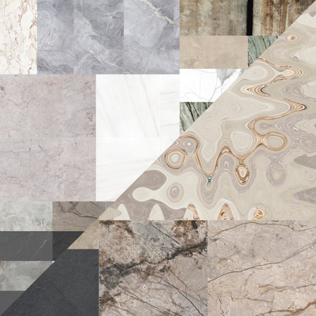 Abstract collage poster made of various marbles, ai generative