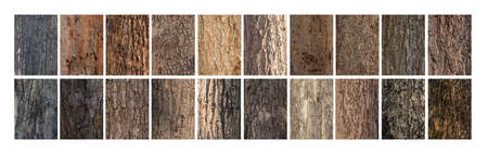 Set embossed texture of the bark of trees on white background
