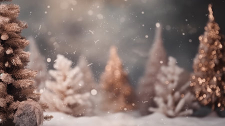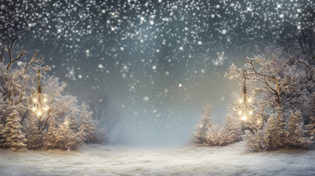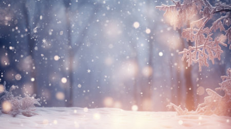 Snowy winter scene with soft lighting and bokeh effect