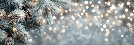 Sparkling winter pine branches with soft lights in a festive holiday atmosphere