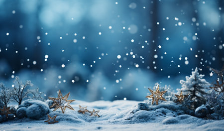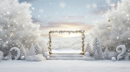 Christmas composition and winter concept. Snow landscape. Christmas and New Year border art design.