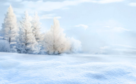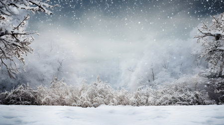 Frozen winter landscape with snow-covered trees and serene beauty of a cold outdoor environment