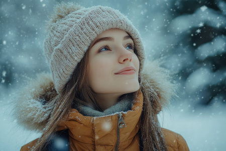 Radiant Young Woman Relishing Winter's Beauty Outdoors