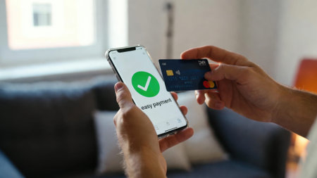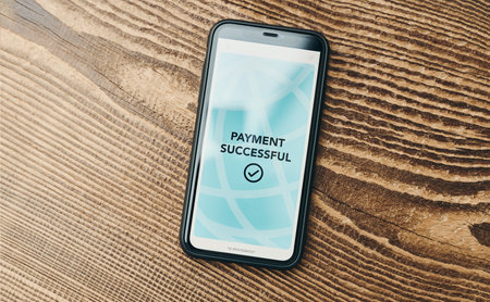 Mobile payment confirmation screen with successful transaction message.