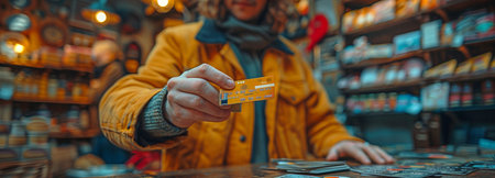 Close-up of a customer paying with a credit card using a portable point-of-sale machine. Concept of digital payment, contactless transaction, retail purchase, financial service, and convenience.