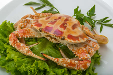 Steamed Blue Crab or Serrated Mud Crab on plate, focus selective.