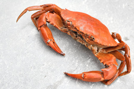 Boiled crab food on table wooden background / seafood crab claws shellfish