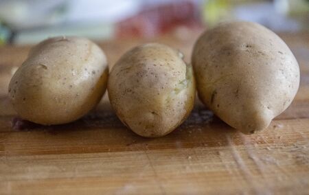 the fresh raw potatoes in the kitchen was preparing for cooking