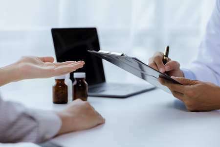 Male doctors explain and recommend treatment with a prescription after the patient meets a doctor and receives results regarding illness problems.