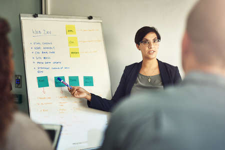 Demonstrating development. a young woman giving a presentation to colleagues in an office.