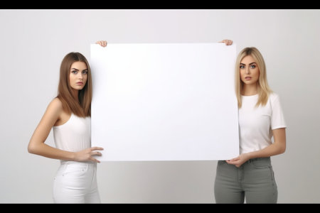 girls holding blank board. Resolution and high quality beautiful photo