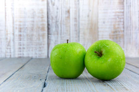Fresh Green apples on the wooden table