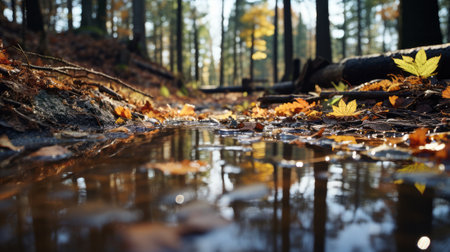 A puddle in the woods. Generative AI.