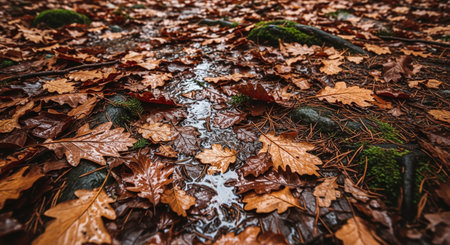 wet autumn leaves cover the forest floor after a rainstorm today
