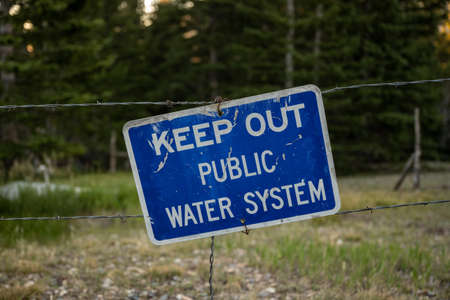 Keep Out of Public Water System Sign on barbed wire fence