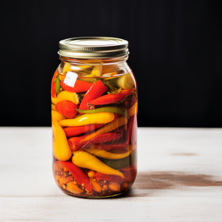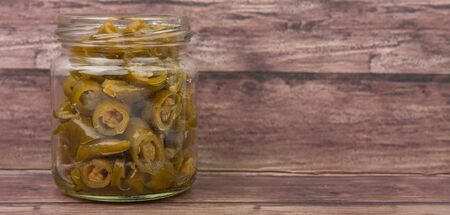 missing mold canned pickled peppers, homemade, in a jar, pepper peas seasoning, copy space, glass jar
