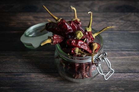 Sun-dried or dried tomato in a glass bottle, seasonal vegetables, stock up for winter