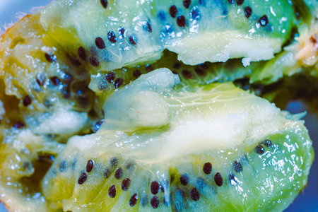 Close-up of kiwi pulp. Background with kiwi texture. Macro photography.