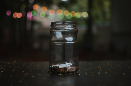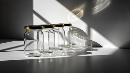 Capped empty Glass Jar in Shadowy Studio Ambiance