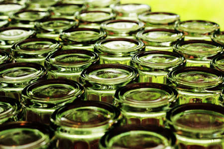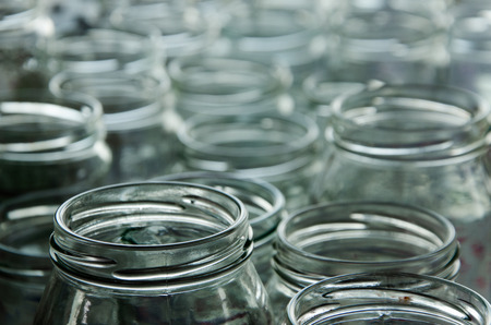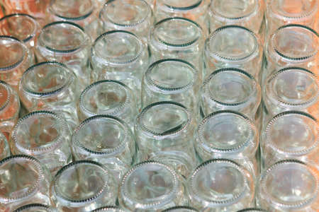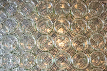 glass jar empty glasses row for jam honey with lid caps abstract background