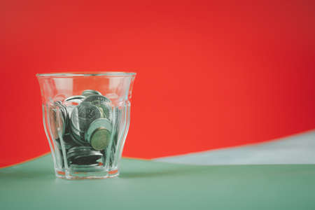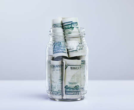 The jar full of coin and bank notes meaning of saving money investment business finance concept.