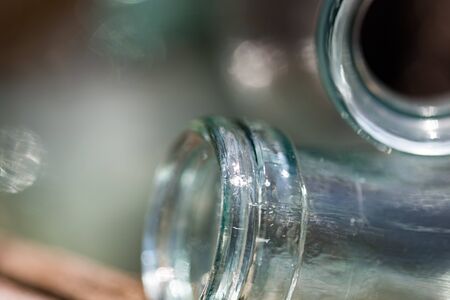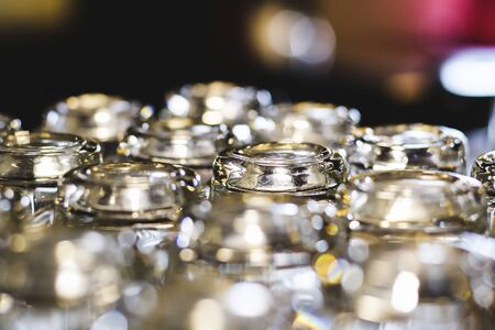 many glass jar empty glasses row for jam honey abstract background bokeh
