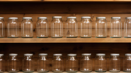 A captivating image of numerous clear glass jars with gold lids, meticulously arranged for efficient storage and preservation in various projects or retail settings.