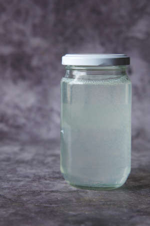 transparent jar with moisturizing gel with hyaluronic acid on a black background