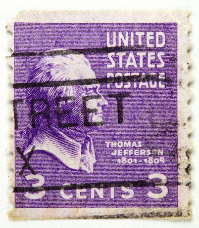 old postage stamp from USA 1 cent - Thomas Jefferson