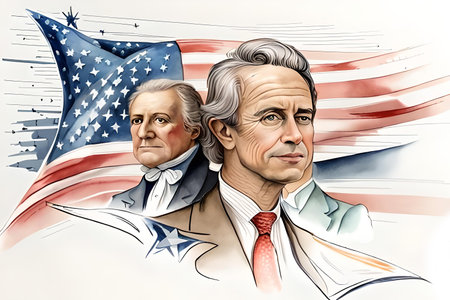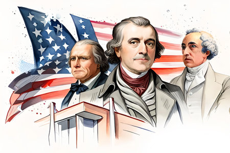 4th july independence day. Watercolor drawing on a white background of American figures who signed the declaration of independence of the United States against. AI-generated Digital Art