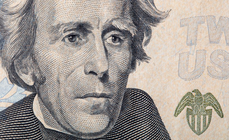 Close up of United States twenty-dollar bill face of Andrew Jackson