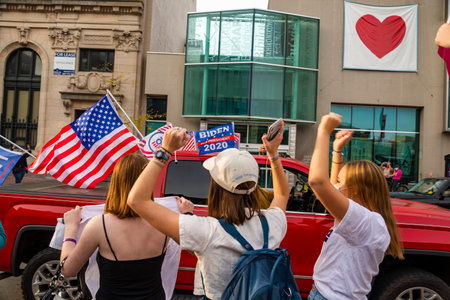 PORTLAND, MAINE, USA - 07 NOVEMBER, 2020: Mainers celebrate Joe Biden's victory of the 2020 United States presidential election in downtown Portland Maine.