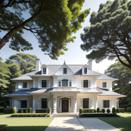 An AI generated illustration of a large, traditional building on a verdant lawn