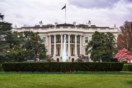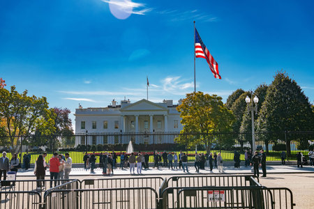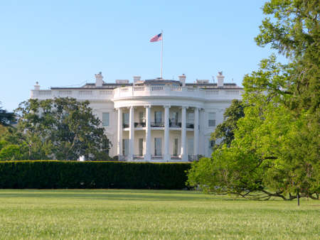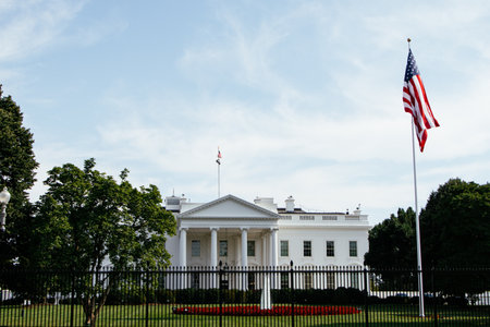 White House in Washington DC, USA - United States of America with blue sky and American flag