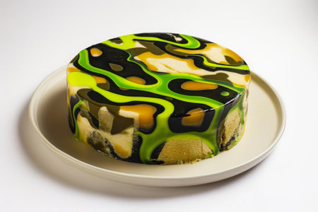 Delicious colorful jelly dessert on black plate. selective focus. 3D Printed Desserts. Smooth Textures and Glossy Finish. Colorful Desserts with Bright Accents. Layered Desserts.