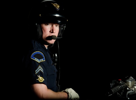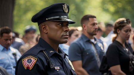 Close up image of a police officer in uniform, symbolizing law enforcement, security, and public service.