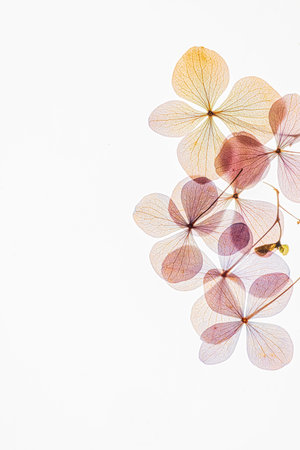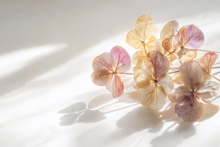 Breathtaking Hydrangea Blossoms: Delicate Dry Flowers Grace a Serene White Surface Background--AR 3:
