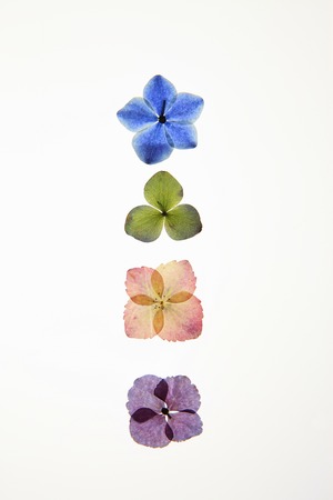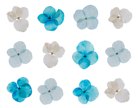 colorful hydrangea flowers isolated on the white background.