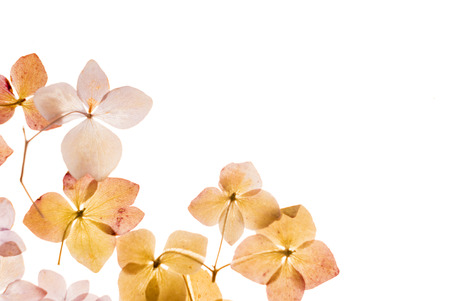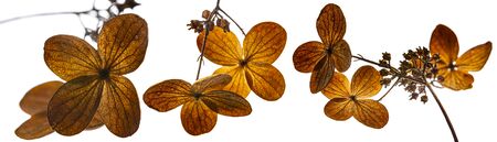 dry flowers hydrangea close up in the detail isolated on a white background