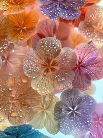 Delicate floral patterns with vibrant colors arranged artistically, showcasing nature's beauty.