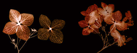 X-ray view of hydrangea flowers showcasing intricate textures and cluster formations