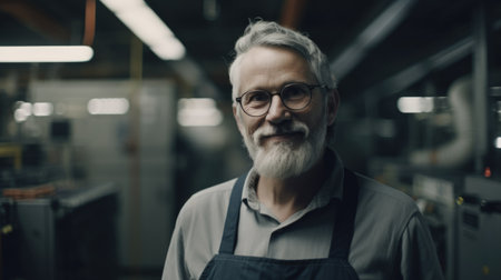 Portrait of a mature man in an industrial environment. He is smiling,Generative AI