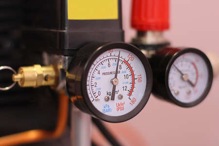 Flow regulator to reduce the pressure of the gas coming from the air compressor. gas pressure gauge in production. selective focus